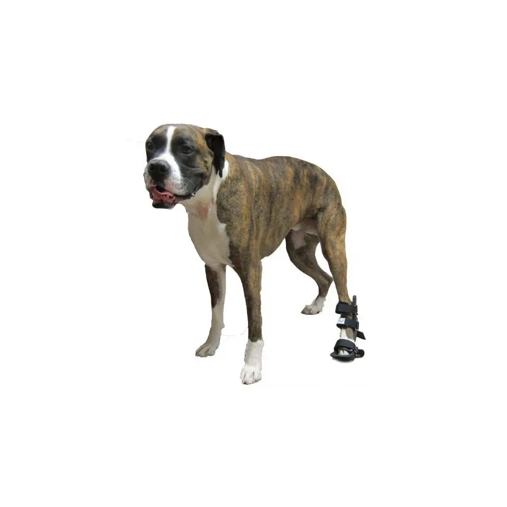 It is made of polypropylene in anatomical format for the best adaptation to the foot of your dog and coated in textile neoprene to improve comfort. Its lateral adjustment system means that the splint does not become loose or tight, a very common problem in rigid splints.